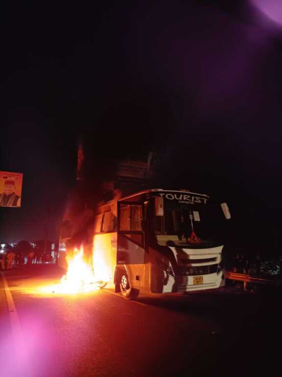 जानकारी के अनुसार, एक प्राइवेट बस हल्द्वानी से कालाढूंगी की ओर जा रही थी। जैसे ही बस लामाचौड़ के पास पहुँची, सामने से आ रही तेज रफ्तार एवेंजर बाइक सीधे बस के बोनट से जा टकराई। टक्कर इतनी जबरदस्त थी कि बाइक की टंकी फट गई और पेट्रोल सड़क पर फैल गया, जिससे देखते ही देखते आग भड़क उठी।
